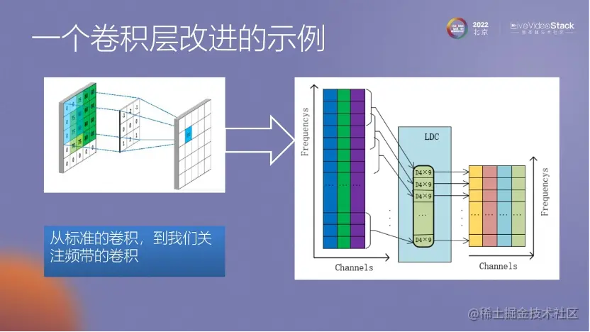 这里我想提一下我们自己的工作,之前介绍的都是其他老师在降噪研究方面的工作,而我们在这个领域做了一点简单的改进。在前面介绍语音和噪声的情况时,提到语音除了基频和谐波外,还可能有共振峰等概念。所以,我们认为在卷积层上不一定需要在整个频谱范围内都做卷积。我们尝试了一种改进方式,即只对关注的低频部分进行卷积,然后再对关注的高频部分进行卷积。
