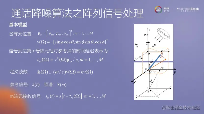阵列算法的推导过程涉及到对阵列接收信号的标注以及确定目标方向矩阵。在推导过程中,可以使用简单的阵列算法,如CBF算法。CBF算法的基本思路是通过比较每个麦克风接收到的信号来确定最优的状态,这是CBF算法的最简单过程。