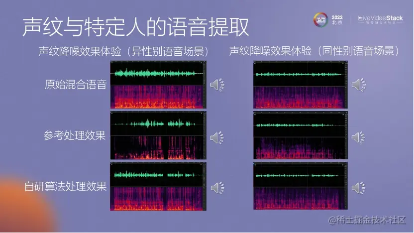 我们通过声纹降噪的方法,利用前30秒或10秒甚至更短的数据来获取用户的声纹信息。然后,在通话过程中,将应用这个声纹信息来进行算法处理,以便抑制其他人的声音。