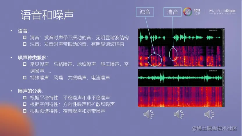 噪声分为很多种。常见的噪声,有马路噪声、地铁噪声、施工的噪声。还有一些特殊噪声,如风噪、共振噪声,因为这些噪声对算法的挑战更高,所以把它们列为特殊噪声。