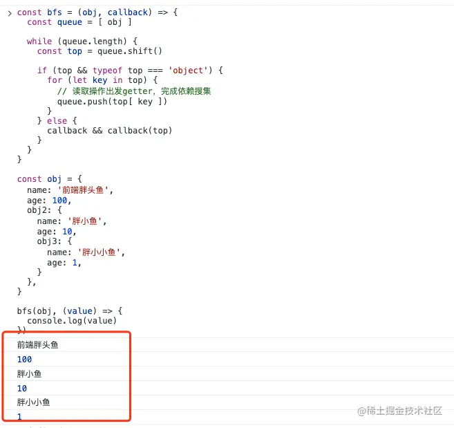 所以哪怕我们通过bfs方法遍历了该对象的所有属性,也仅仅是第一层的key具有了响应式效果而已。