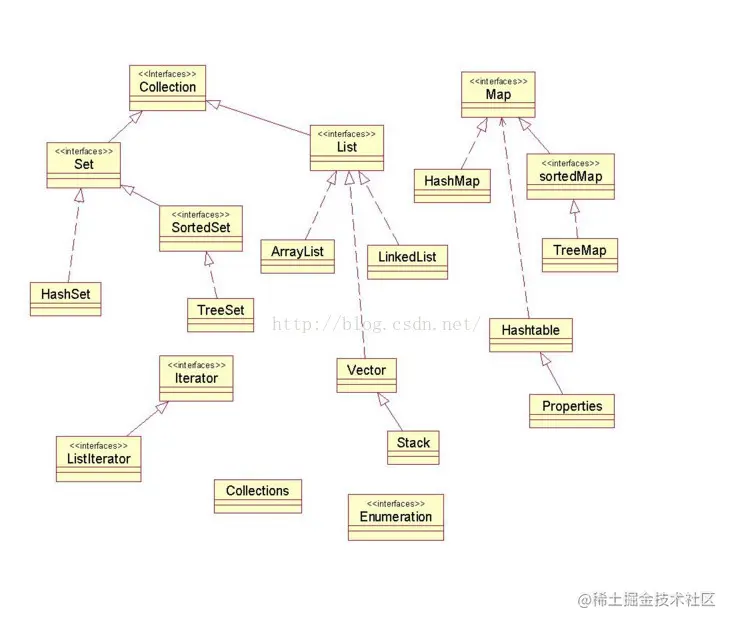 来源于Java.util包,是非常实用常用的数据结构!!!!!字面意思就是容器。具体的继承实现关系如下图,先整体有个印象,再依次介绍各个部分的方法,注意事项,以及应用场景。