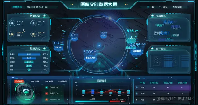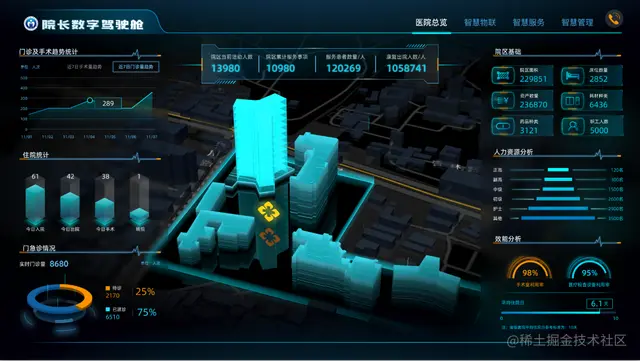 医院可视化大屏实现精准管理,是指利用先进的技术手段将医院的各项数据信息以直观、清晰的方式展示在大屏幕上,从而实现对医院运营及各项业务的精确管理。大屏幕的布设通常位于医院的指挥中心或重要部门,能够实时呈现医院的各项指标、数据、流程等信息,管理人员可以更加直观地了解医院的运营情况和病人流动情况,从而对医院的资源进行合理分配,优化医疗服务。