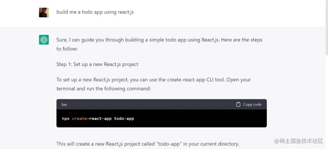 在上图中,ChatGPT 被提示构建一个待办事项应用程序,并且它使用确切的 Javascript 框架(React)来完成此操作。这种级别的智能工具有多种优势,具体为: