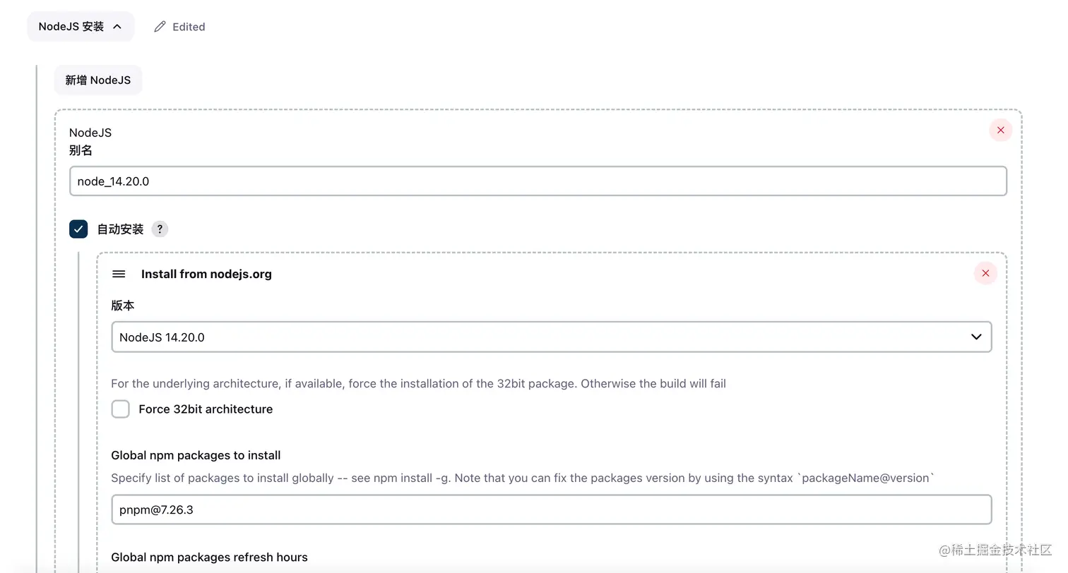 安装跟本地一样的node版本就行,pnpm的,再global npm 中写上版本号即可