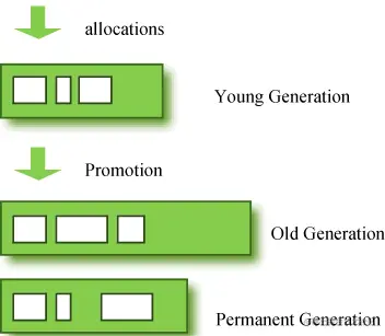 Java内存分配和回收的机制概括的说,就是:分代分配,分代回收。对象将根据存活的时间被分为:年轻代(Young Generation)、年老代(Old Generation)、永久代(Permanent Generation,也就是方法区)。如下图(来源于《成为JavaGC专家part I》,www.importnew.com/1993.html):