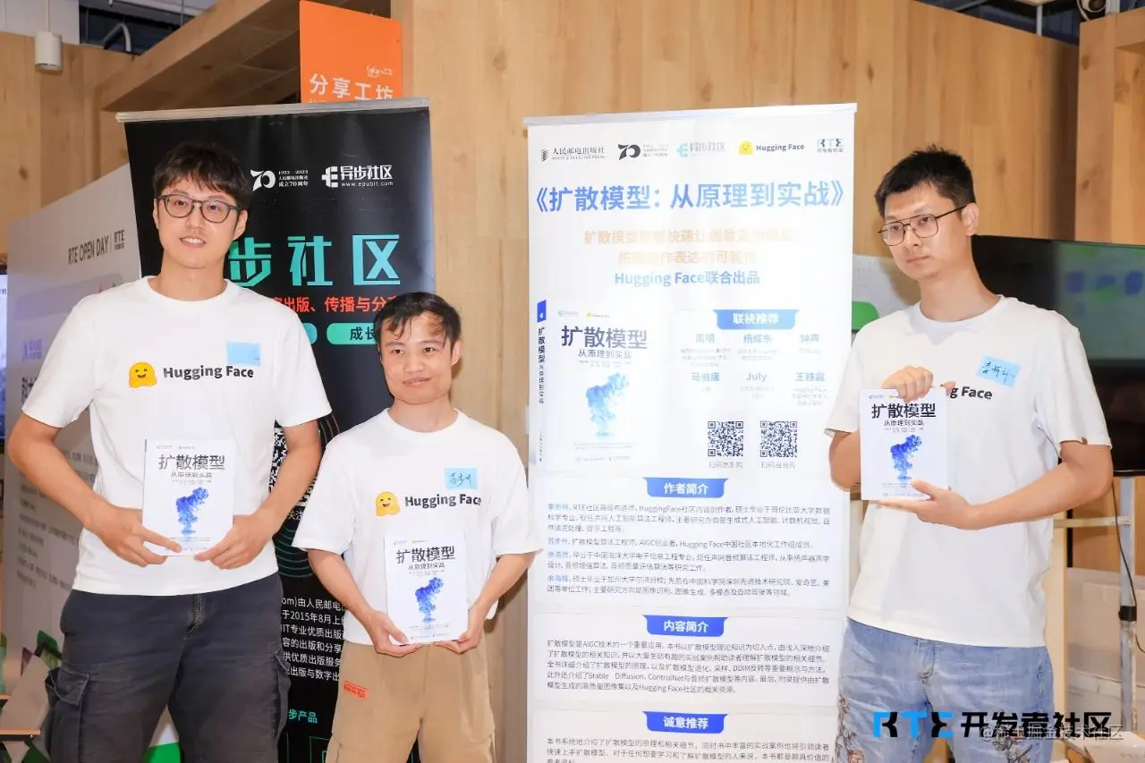 HuggingFace 社区在本次活动中,特别设置了新书《扩散模型:从原理到实战》的首发签售。本书由人邮出版社出版,RTE 开发者社区高级布道师 @李忻玮 作为本书编著者之一,也在现场和大家进行了交流分享。