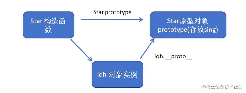 如果没有sing 这个方法,因为有__proto__ 的存在,就去构造函数原型对象prototype身上去查找sing这个方法