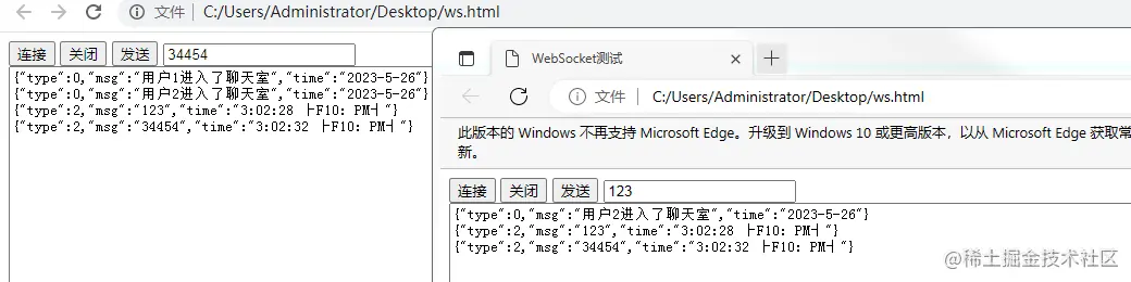 WebSocket测试运行如下: