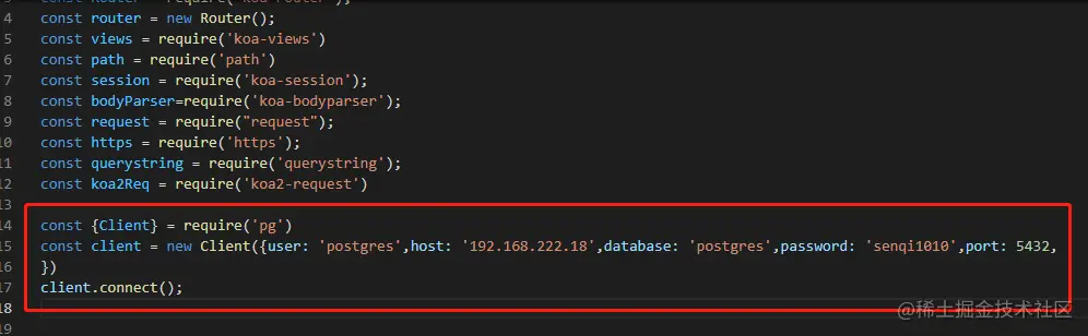 我们想要连接postgresql数据库 请在你的pakeage.json 文件里引入:然后npm i
