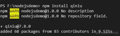 ③在cmd命令行中进入新建的文件夹nodejsdemo 运行 npm i (生成package-lock.json文件)