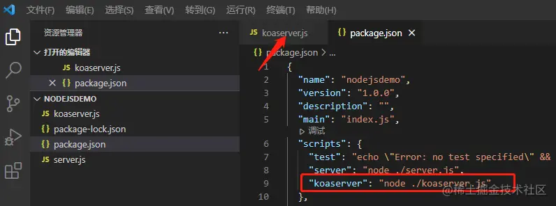 首先我们得安装koa 在你的pakeage.json中添加 以下内容 然后npm i