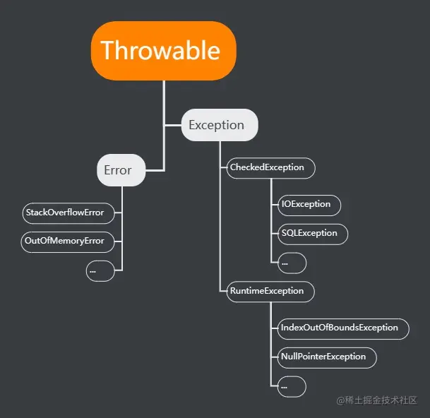 示例图描述的就是目前JAVA体系中异常处理框架的整体结构。