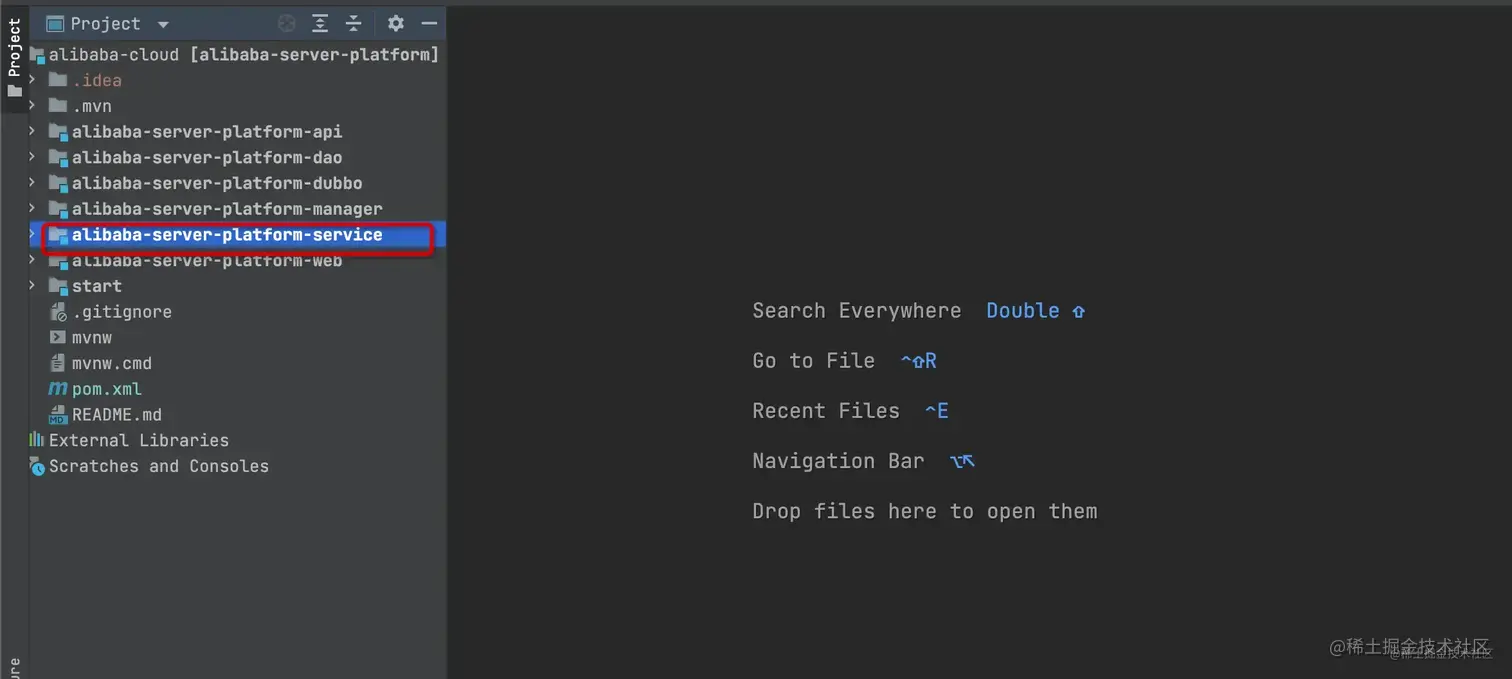 alibaba-server-platform-service**的业务逻辑服务提供者。