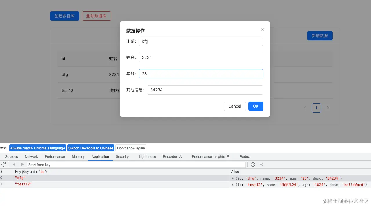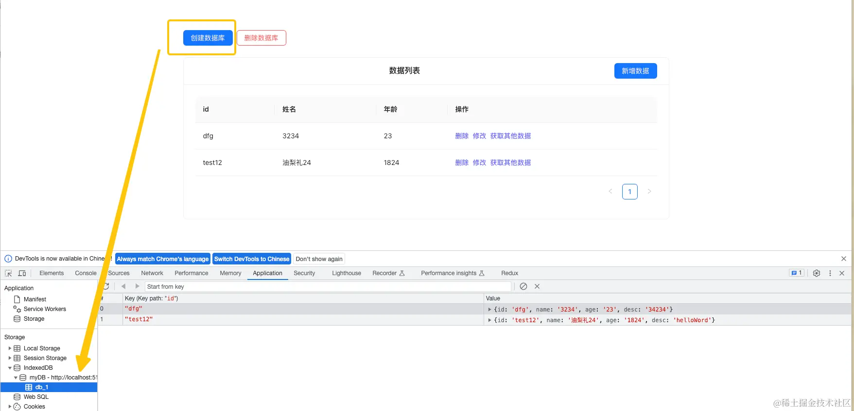 <Button onClick={async () => await IndexDB.deleteDBAll(dbName)} danger>删除数据库</Button>
