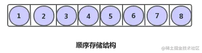 ① 顺序存储结构:把元素分别放在地址连续的存储单元中的存储方式