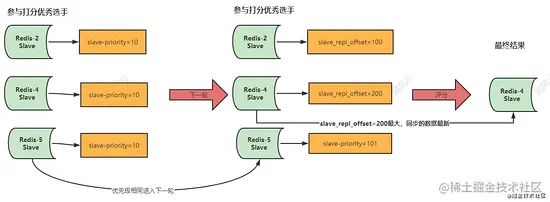 接下来就会从剩下的优秀从库内进行打分,打分最高者为新的Master,