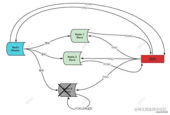 监控主从节点是否下线,从节点可以简单认为没有收到响应就直接下线,因为从节点下线一般不会影响到集群的使用。