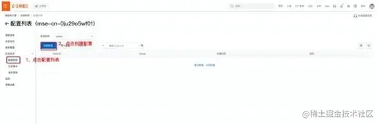 6、点击进入相应实例的控制台,点击“配置列表”、“创建配置”。