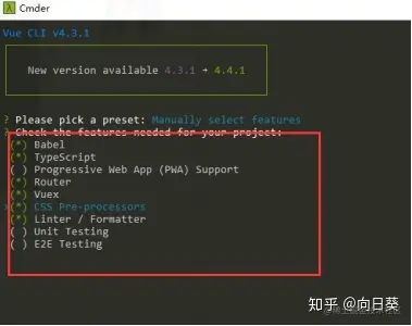 1)、第一个选项是预设配置项,第一个只包含babel,eslint,要选第二个,可以自由配置。