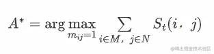其中相似度可以通过一些空间距离计算, 如 IoU 或 L2 距离。我们的目标是获得最优匹配 ,其中匹配检测和轨迹之间的总相似度(或分数)最高: