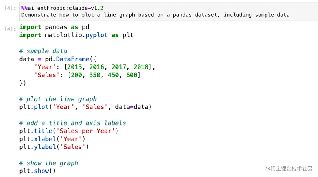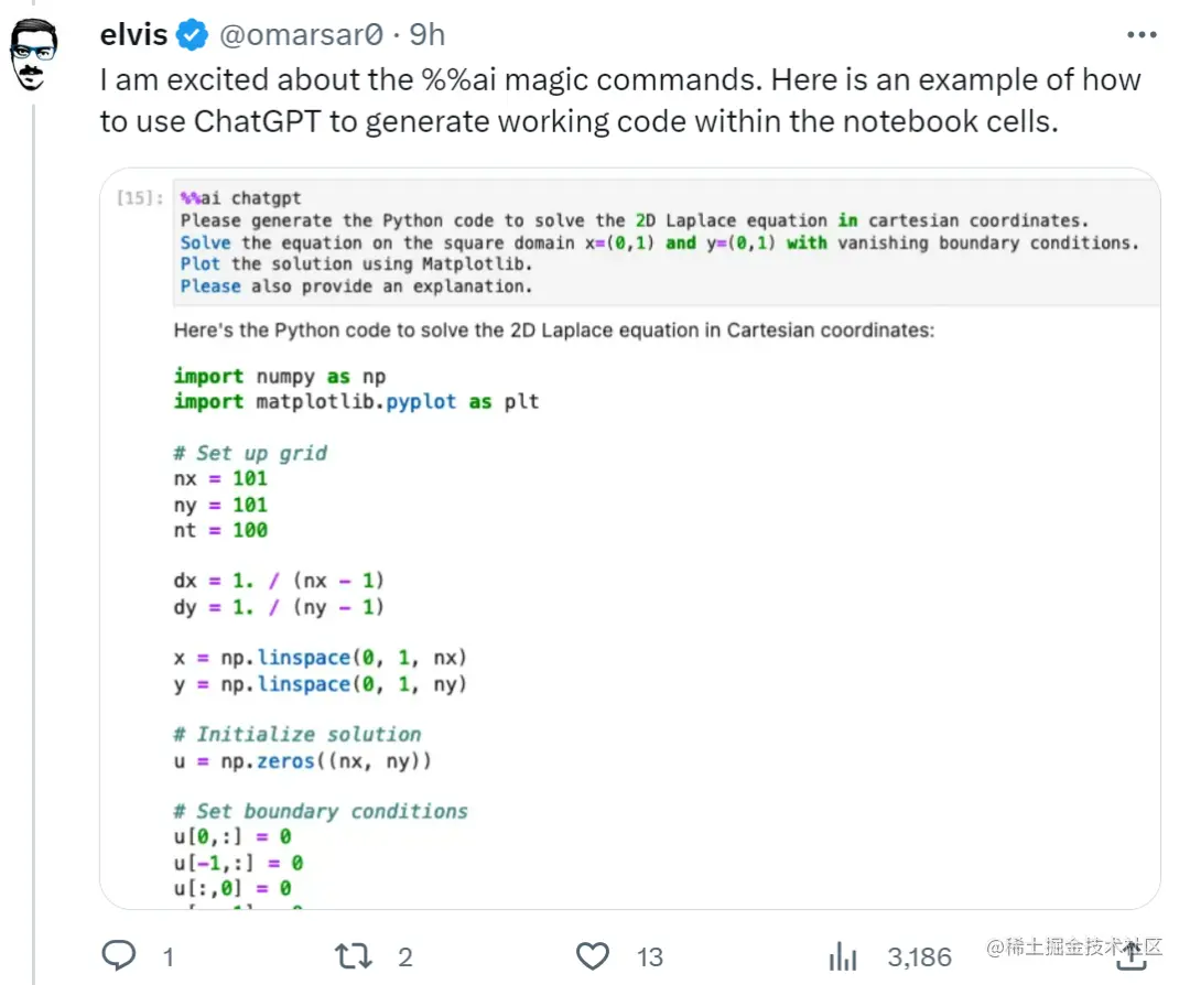还有研究者体验了一下 %% ai 魔法命令,让其调用 ChatGPT :