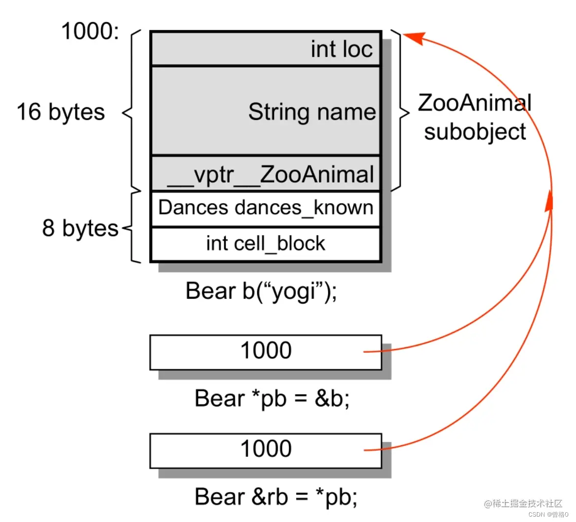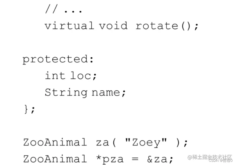pza指针类型为 ZooAnimal,就可以知道其所指对象的大小为(4+8+4),内容如下:
