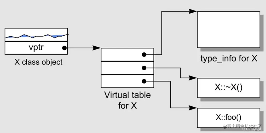 - 虚函数表的第一个slot并不是类虚函数地址,而是类的类型信息(用以支持RTTI)。