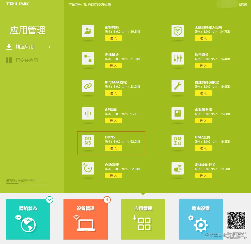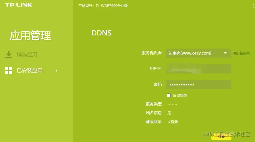 在确定ip一致后,这个ip就是我们的外网ip,外网可以通过这个ip访问到我们的路由,但是这个ip是会发生变化的,它可能随着重新拨号等情况发生变化。因此我们要借助路由的DDNS功能。DDNS即动态域名解析,顾名思义,它利用一个不变的域名,时时刻刻指向着我们变化的外网ip,只要ip发生变化,域名的指向也会跟着变化。所以,这个域名就代表着我们外网ip。我们访问这个域名即可。