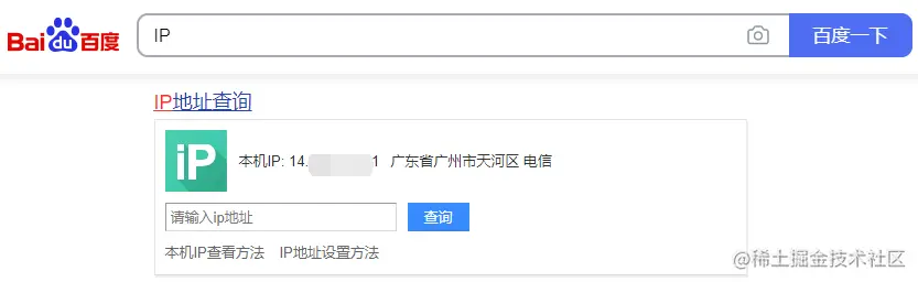 - 百度查询自己的ip