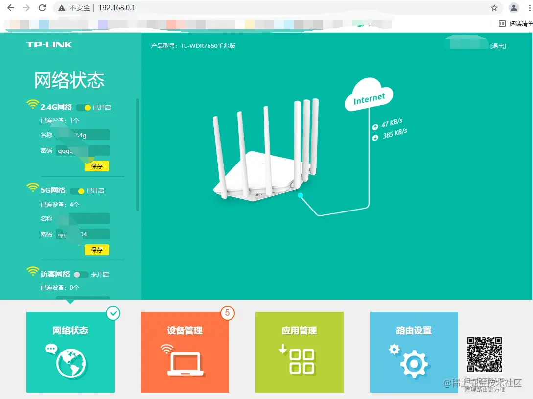 - 首先登陆我们路由器的管理平台,一般是我们的网关ip,这里是http://192.168.0.1/