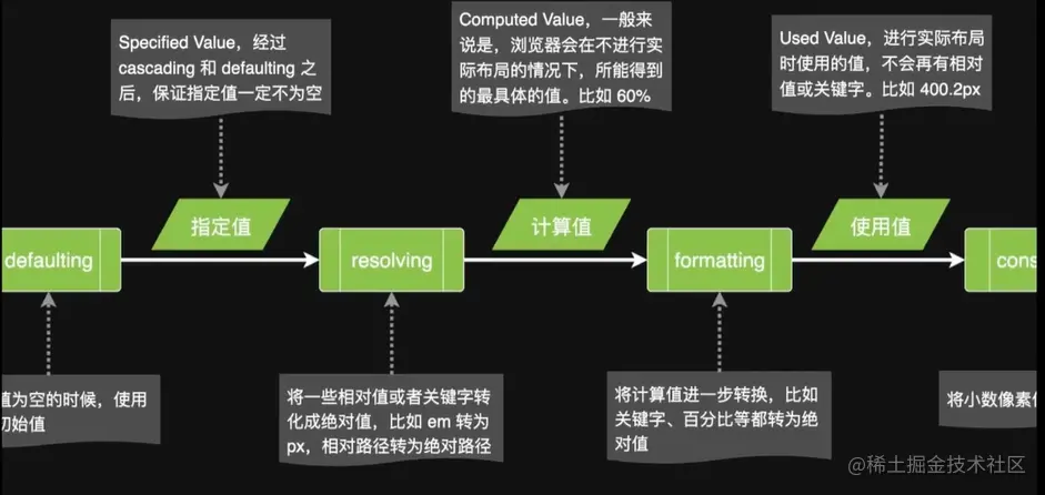 某些属性会自动继承其父元素的计算值,除非显式指定一个值