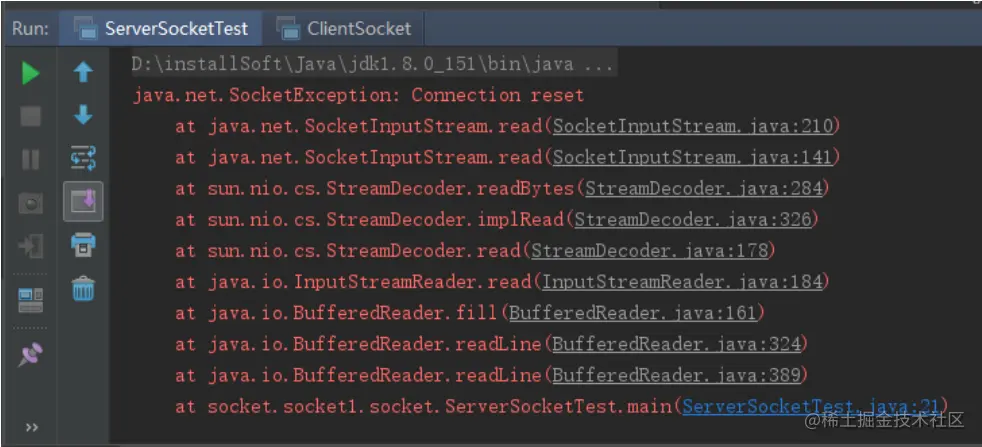 所以服务端还在一直等待接受客户端的数据,结果客户端此时已经关闭了,就是在服务端报错:java.net.SocketException: Connection reset