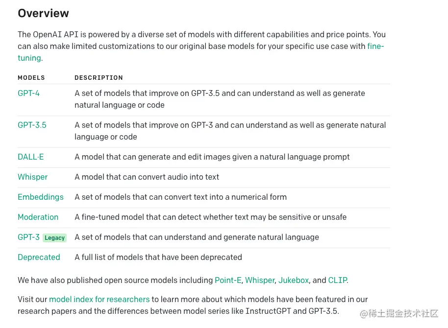 - Whisper 音频转文本模型,可以帮你把各种音频文件转成文字,再结合 GPT-3.5,你可以直接提取出音频中的重点等。