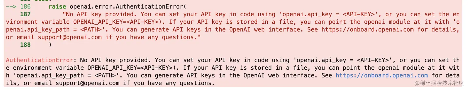,因为我们没有设置 OPENAI_API_KEY 这个环境变量。