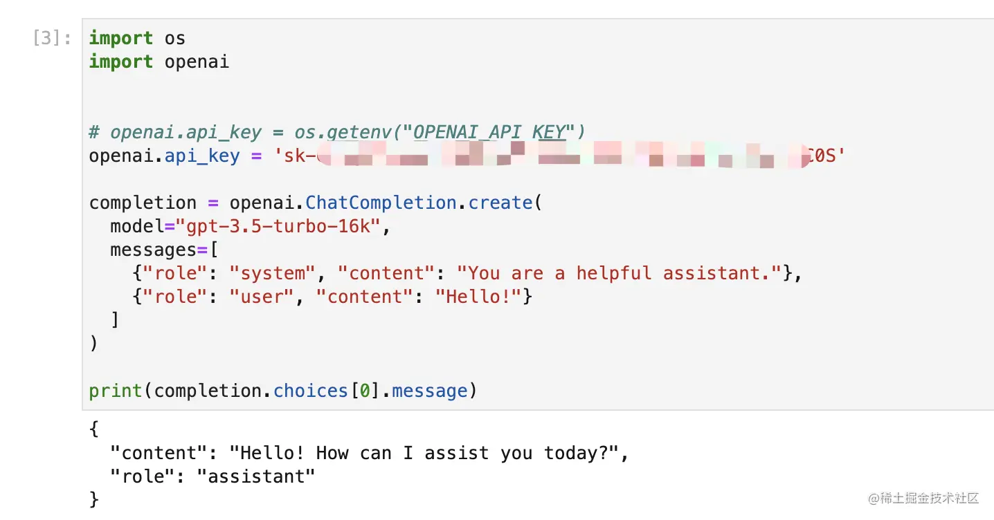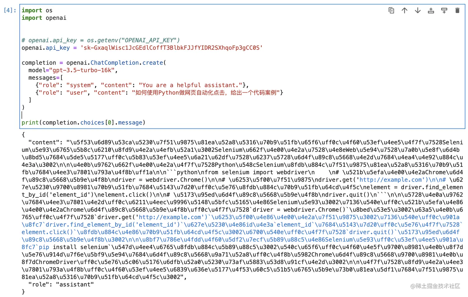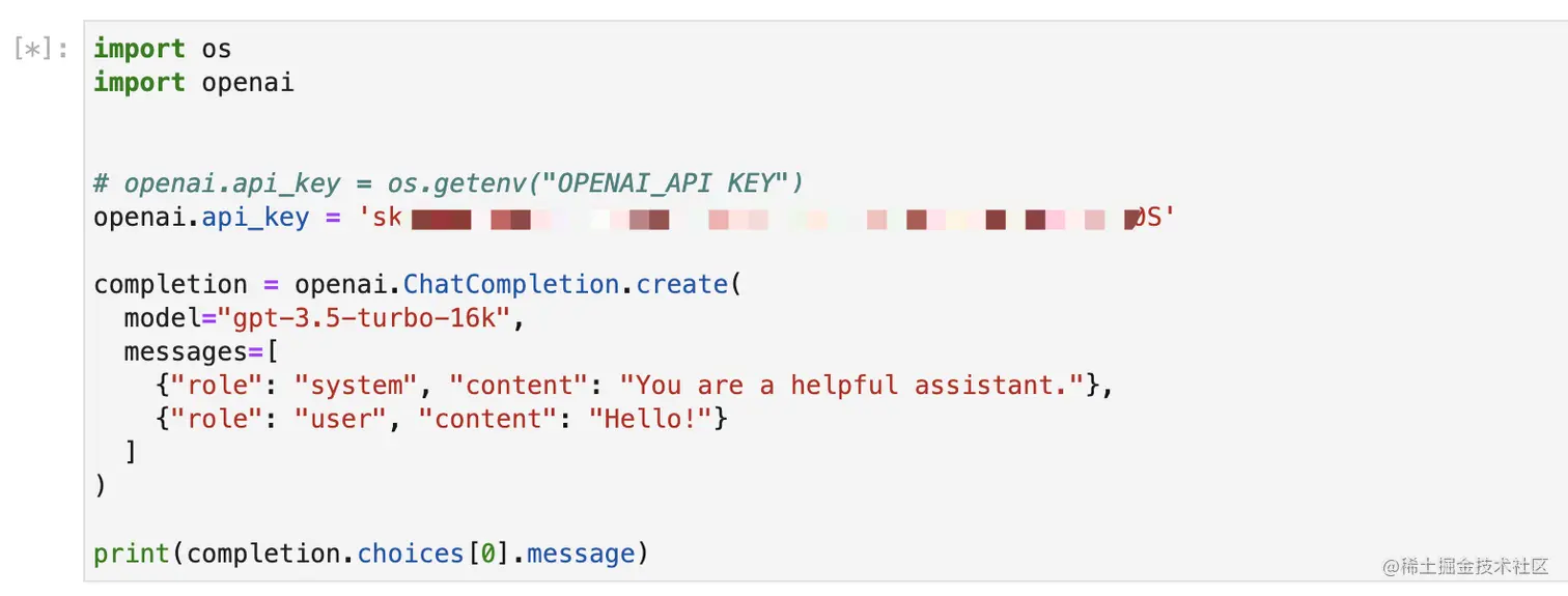 我们可以把代码改下,把我们前面生成的 API_KEY 直接赋值给openai.api_key