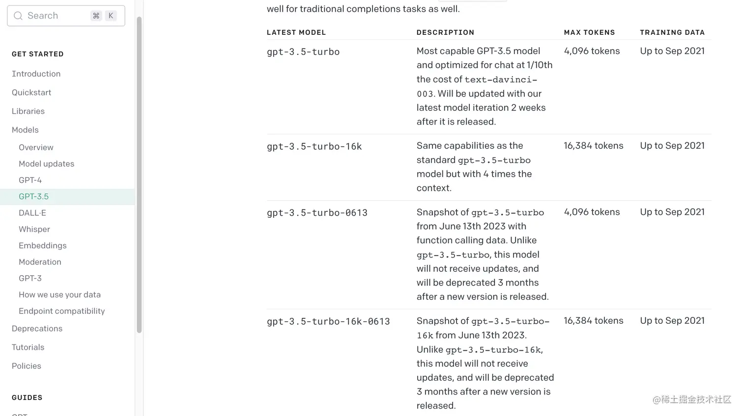 Tokens: GPT和Embeddings模型将文本按照词块(tokens)进行处理,tokens表示常见的字符序列,例如 "tokenization" 被分解为 "token" 和 "ization"。输入的最大上下文长度对于GPT模型是prompt和生成输出的总和,而对于嵌入模型是输入的长度。
