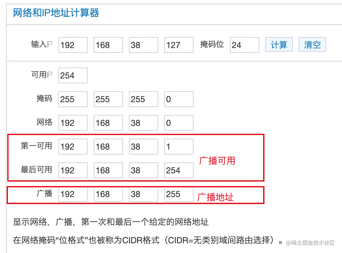 子网掩码:0xffffff00 == 255.255.255.0 有 24 个 1