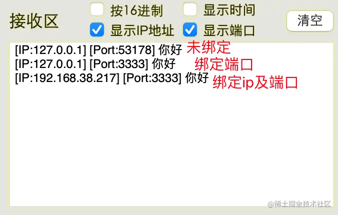 # 可使用bind(),给发送端绑定一个ip及端口;未绑定则使用本机ip及随机端口