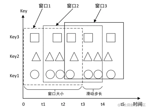 使用滑动窗口时,需要设置窗口大小和滑动步长两个参数。因此,如果滑动窗口的步长小于窗口大小,则滑动窗口可以重叠。这种情况下,元素被分配给多个窗口。如果滑动窗口的步长大于窗口大小时,有些元素可能会丢失。