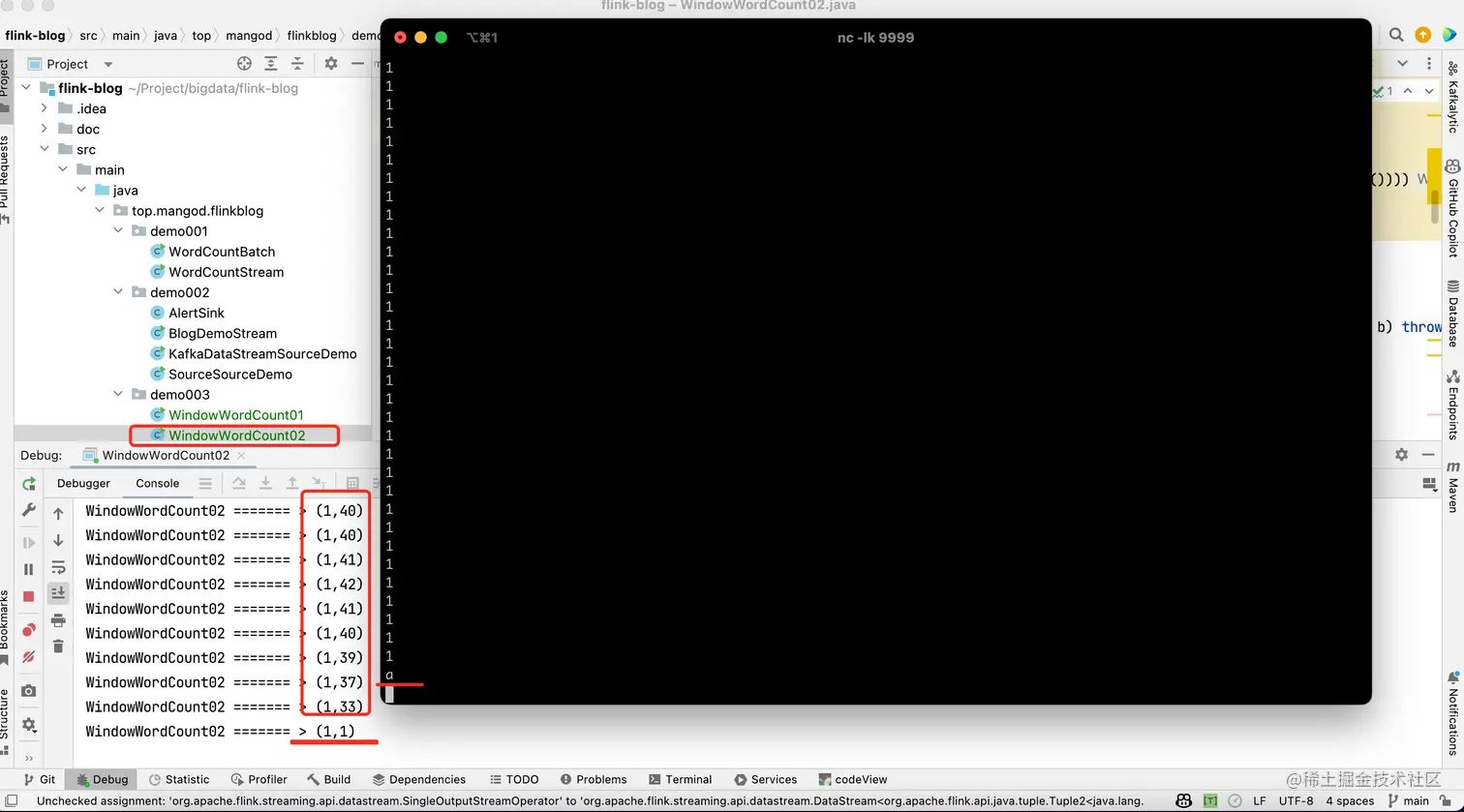 继续使用上面的例子,统计窗口内,所有输入的单词的数量,示例如下: