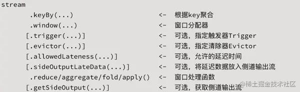 窗口是处理无限流的核心。窗口将流分成有限大小的“桶”,我们可以在其上应用算子计算。