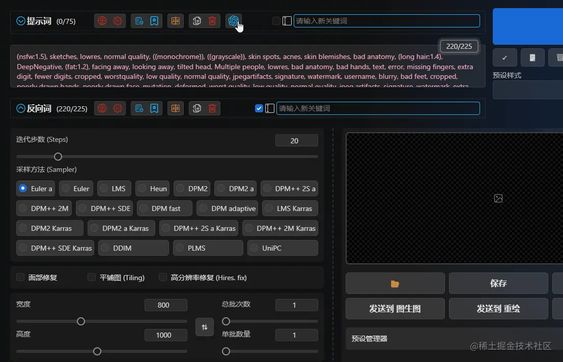 可以以可视化的方式,调整提示词的权重,不会因为各种符号不配对,少加后面的括号之类的结束符号苦恼啦