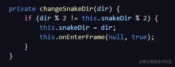 2.小蛇方向的控制就比较简单了,根据玩家按下的按钮,改变小蛇的方向,根据规则小蛇只能把方向改成与之垂直的2个方向: