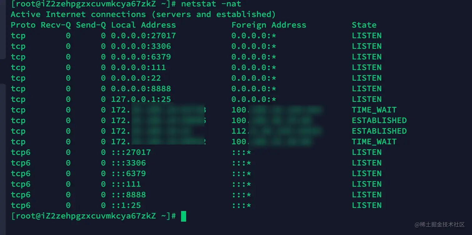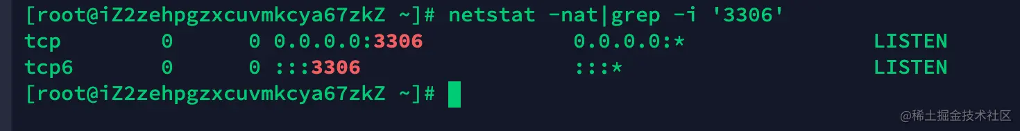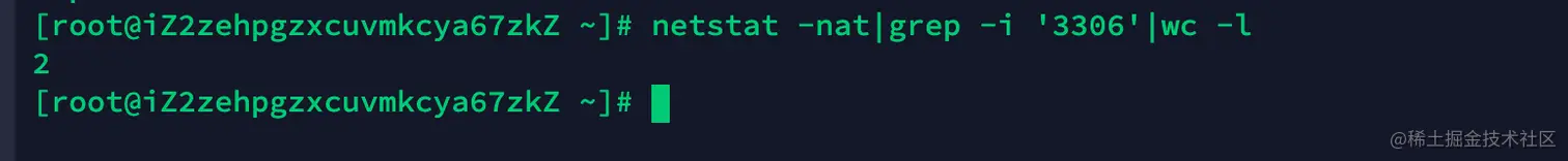 这样我们可以排查到连接到当前服务器的所有ip。攻击者往往通过击垮服务器的某些服务来达到数据破坏,并以此为要挟的目的。当然,MySQL服务便是这一现象的重灾区。所以,我们需要排查服务对应的端口连接数,查看连接是否异常。