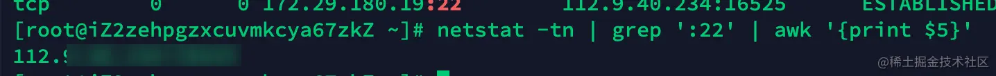 netstat -tn | grep ':3306' | awk '{print $5}'