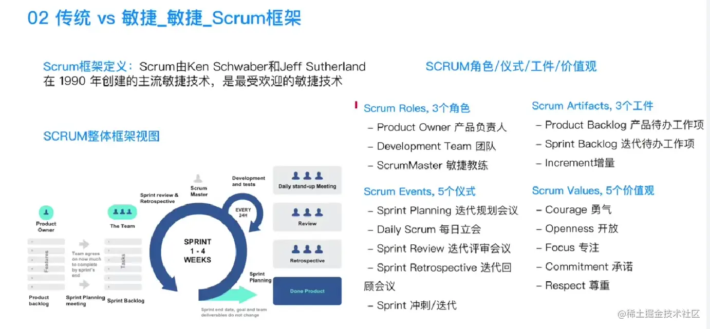 Scrum团队(Scrum Team):由跨职能的团队成员组成,包括开发人员、测试人员等。他们负责根据产品待办清单完成目标,并将工作组织成可交付的增量。