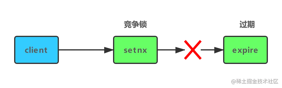 如果 SETNX 成功,在设置锁超时时间后,服务器挂掉、重启或网络问题等,导致 EXPIRE 命令没有执行,锁没有设置超时时间变成死锁。