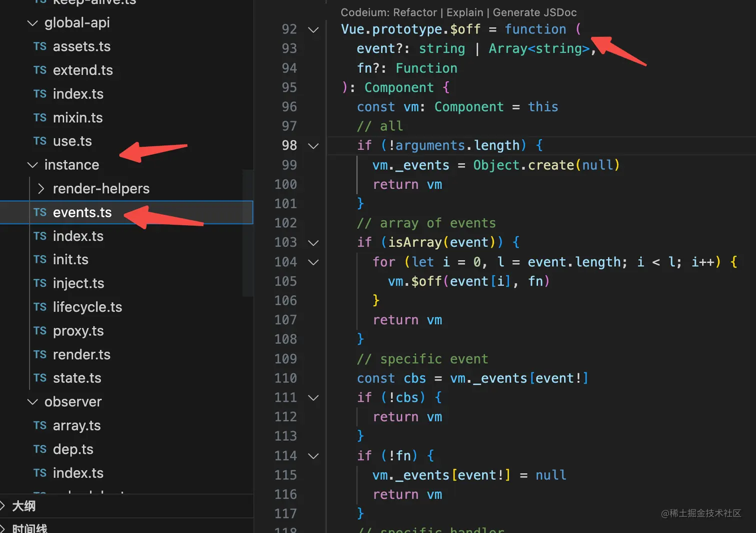 vm.$off的第一个参数event支持数组,所以接下来需要处理event参数为数组的情况。