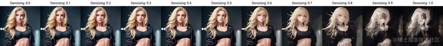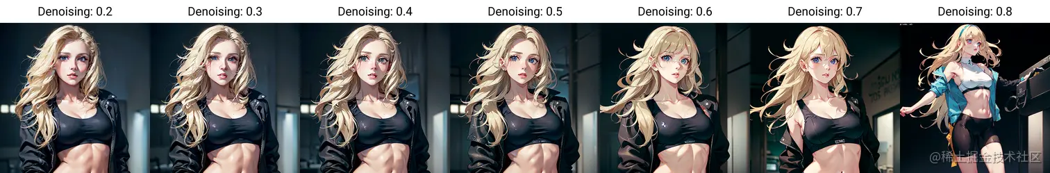 开头我们说图生图的目标就是为了可以根据图片为基准来生成新的图,如果生成的图和原图看不出来联系,那么图生图是不是就没什么意义了? 重绘幅度 就是来控制这个参数的